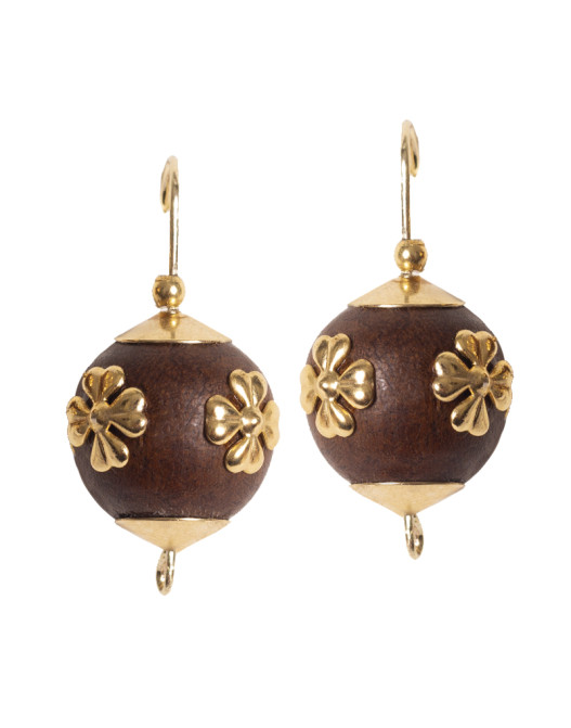 Brinco Dourado Bolas De Madeira Com Trevinhos