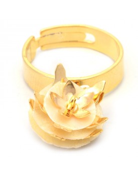 Colar Dourado Flor Couro Marrom E Pérola