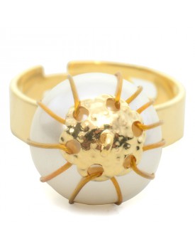 Brinco pastilha de metal com flor de resina na extremidade. Nossos brincos são banhados a ouro de altíssima qualidade e não contém níquel em sua composição, que é um dos grandes causadores de alergias. Medidas (cm): 3 de altura x 1,4 de largura. Peso (g): 3,2.